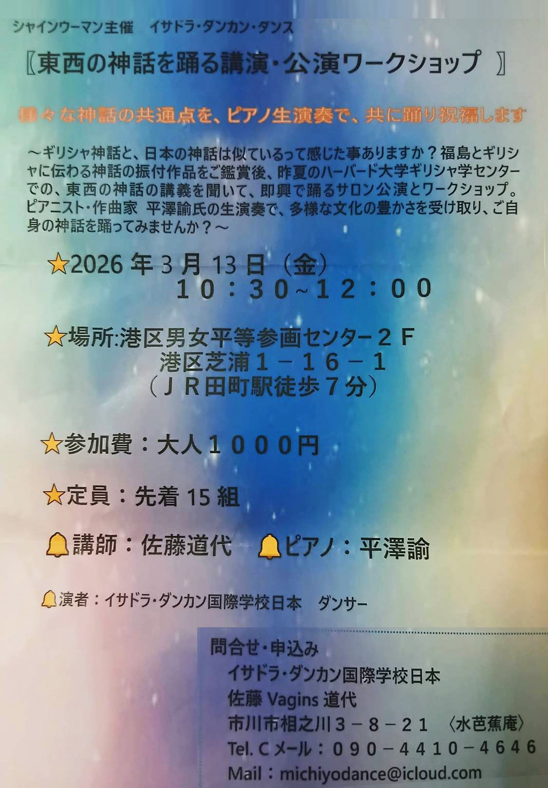 今年も踊り努力し続け、学んできた身体調整法をお伝えし、それぞれの方々の身体表現をお手伝いできたら嬉しいです。
