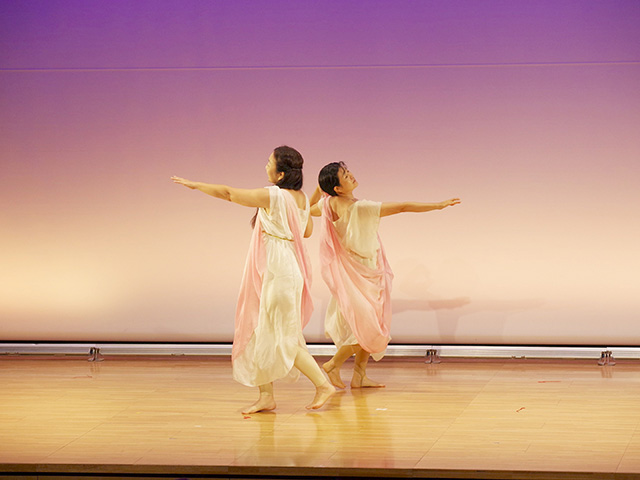 イサドラ ダンカン 国際学校の河内美穂さんと妹尾直子さん、2020年秋の会での「タナグラ」「薔薇の花びら」「鷺」の踊りで